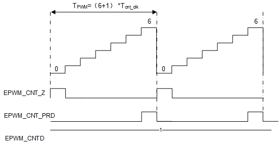 - 在计数值为 0 的时候,信号 EPWM_CNT_Z = 1。